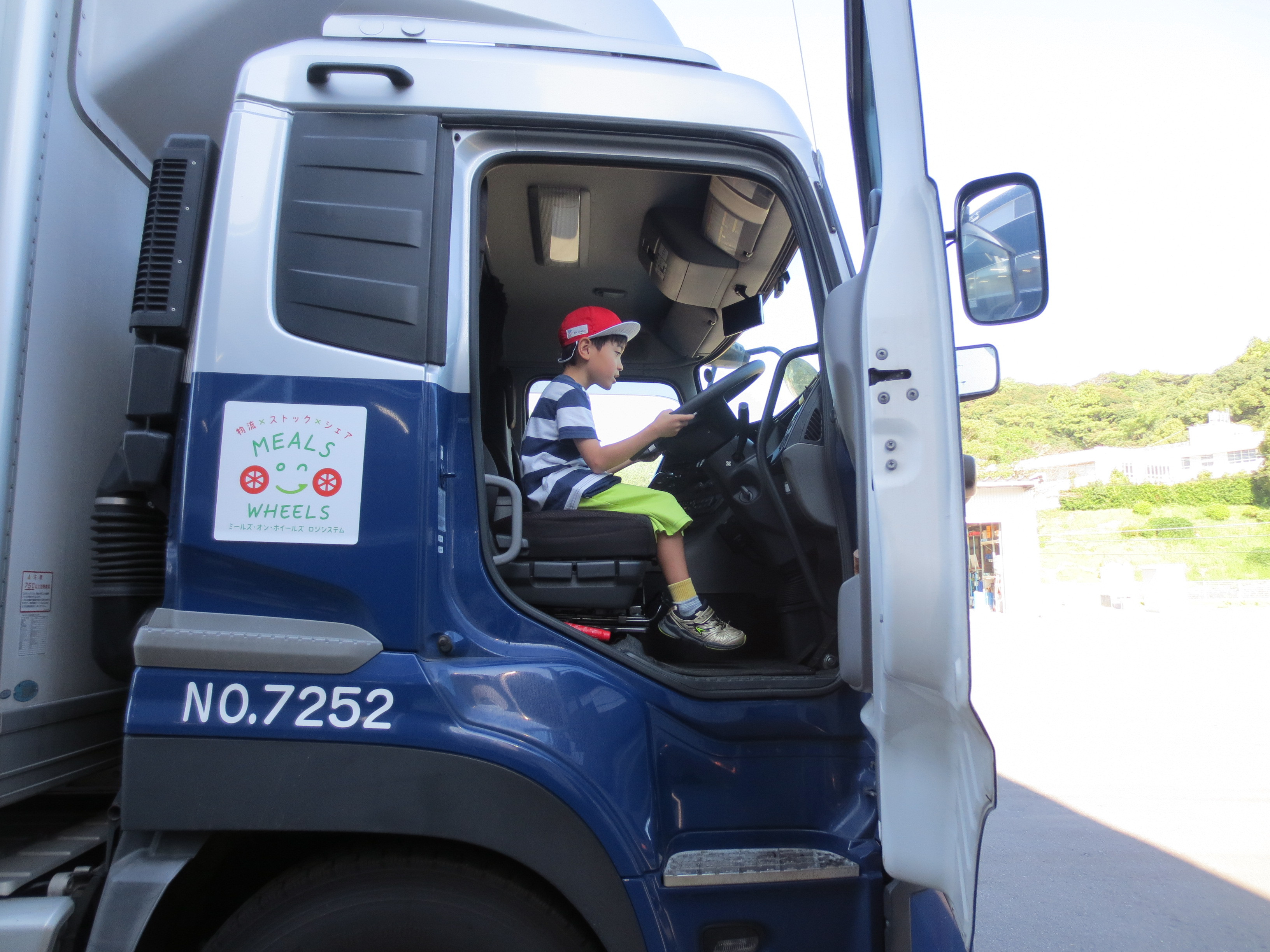外では、10t車の大型トラックの運転席に交代で座っていただき