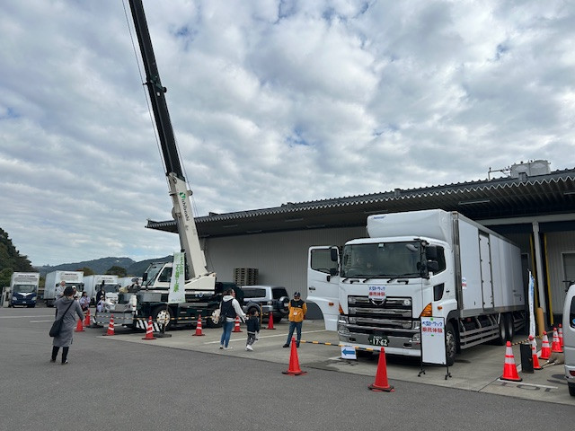 今回は、クレーン(石橋工業)・重機(慎)・大型トラック(ナガロジ)の乗車操縦体験